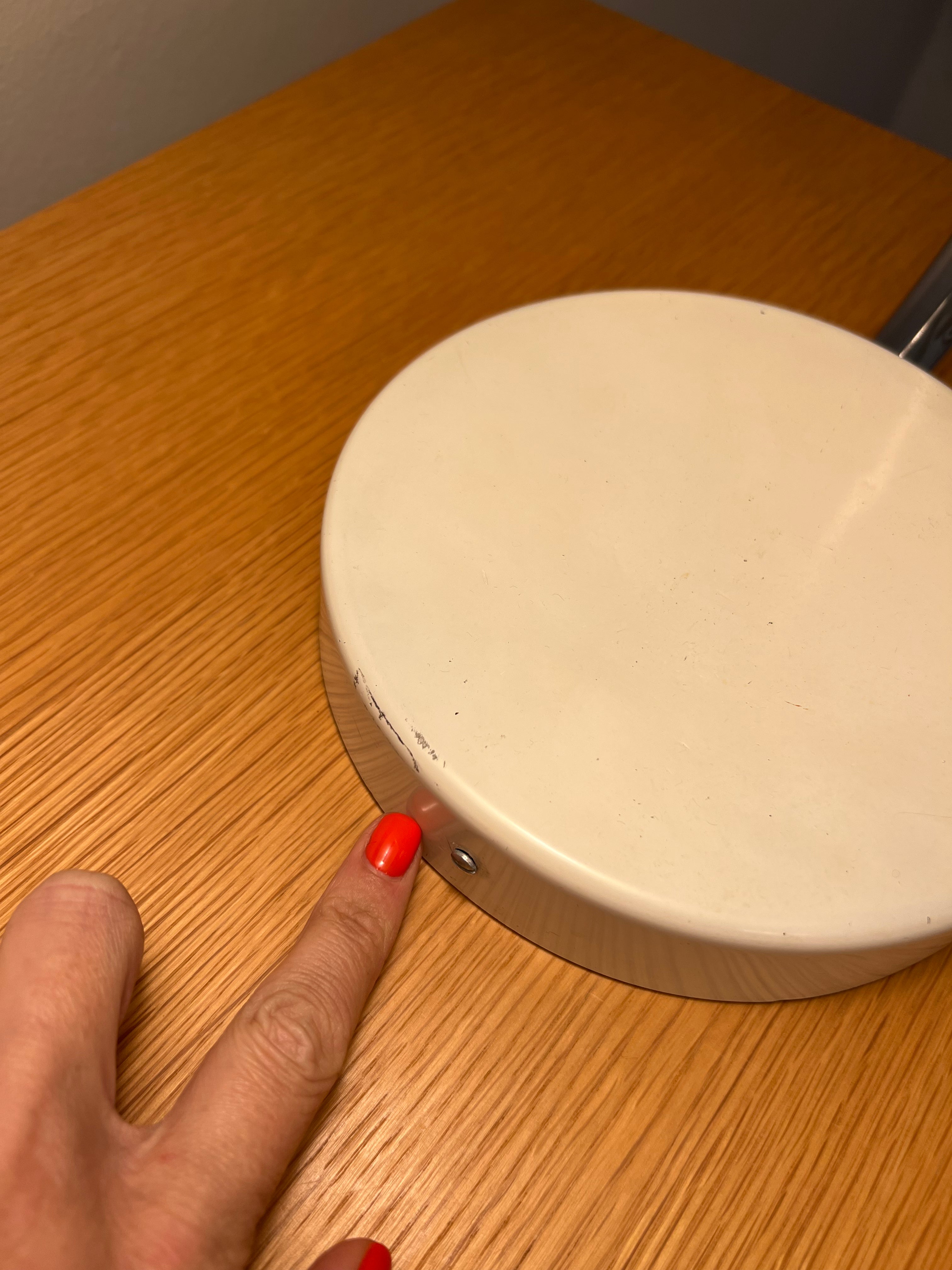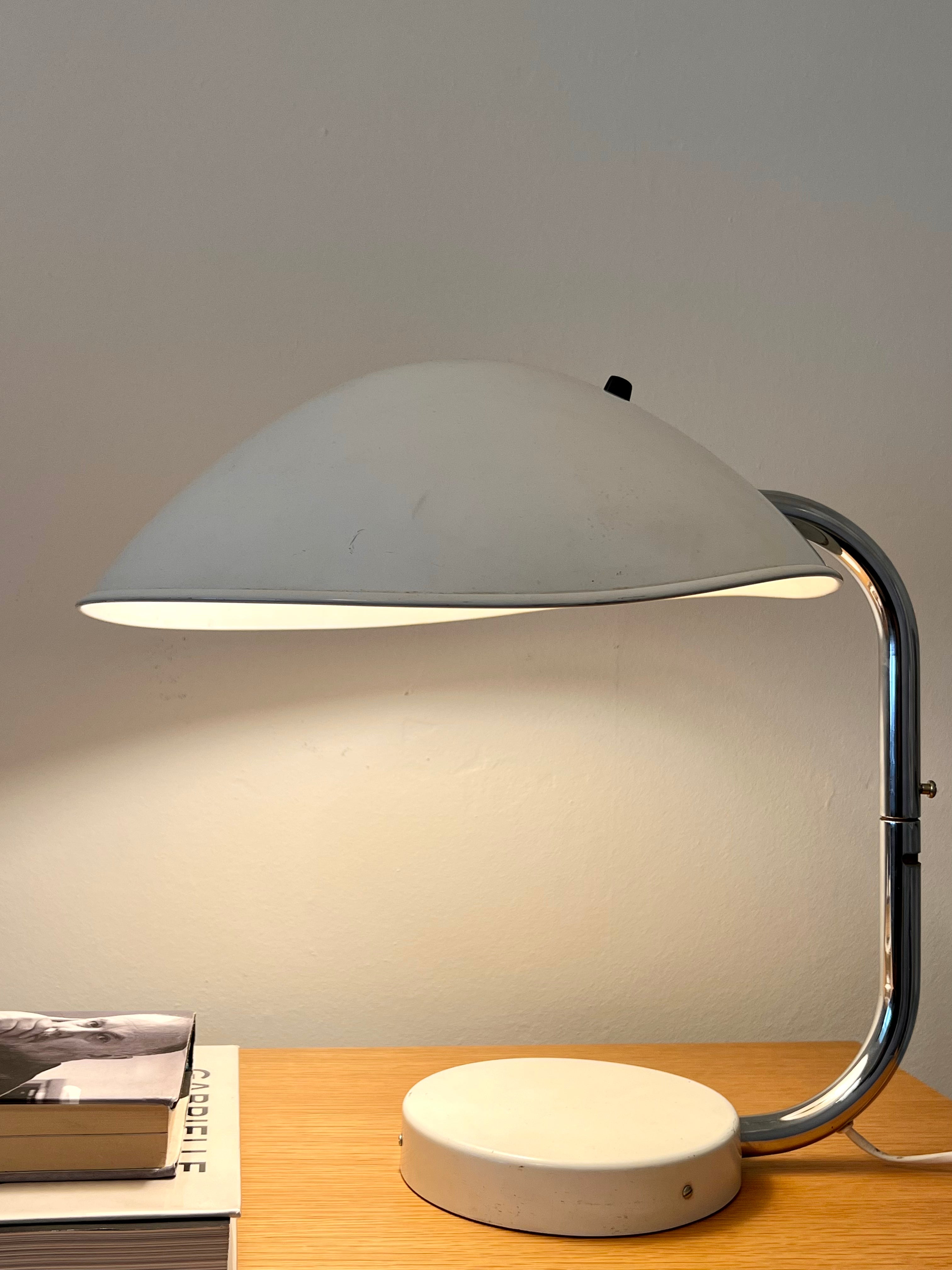 Large mid century table lamp, Sweden. Made of chrome and lacquered metal. Fantastic bauhaus-inspired shape and very substantial. Perfect for a desk, side table or sideboard. The turn-key switch is on the top.