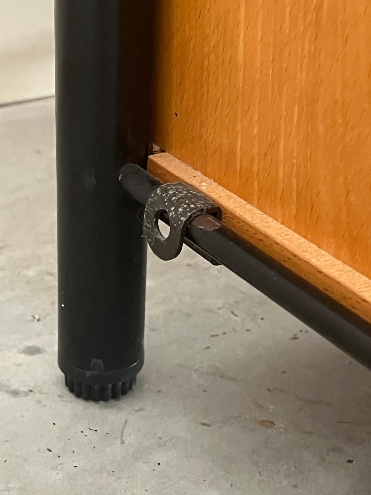Overall in very good vintage condition with light, age-appropriate wear. The wood veneer surfaces are clean and well-presented, with only minor marks and a few surface scratches consistent with gentle use. Some subtle color variations and impressions are visible on several shelves (see photos), but these do not detract from the overall presentation.