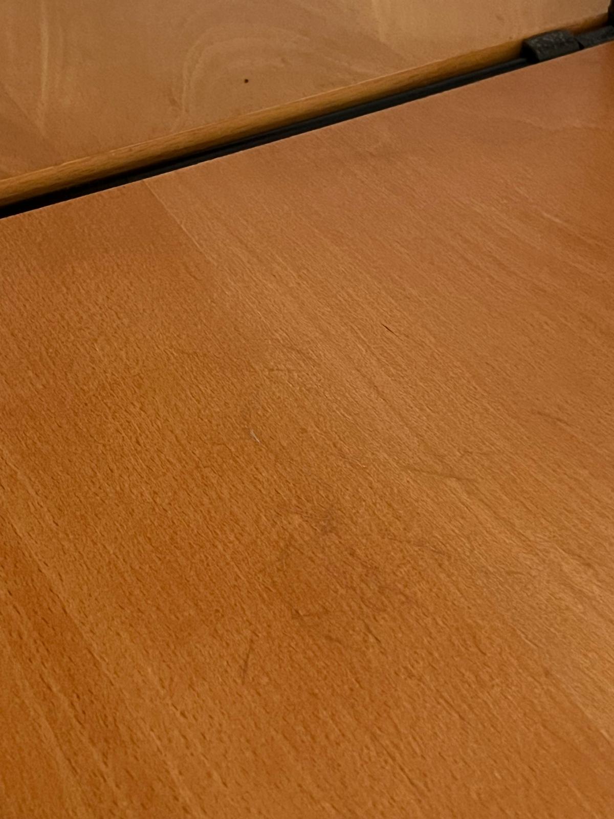 Overall in very good vintage condition with light, age-appropriate wear. The wood veneer surfaces are clean and well-presented, with only minor marks and a few surface scratches consistent with gentle use. Some subtle color variations and impressions are visible on several shelves (see photos), but these do not detract from the overall presentation.
