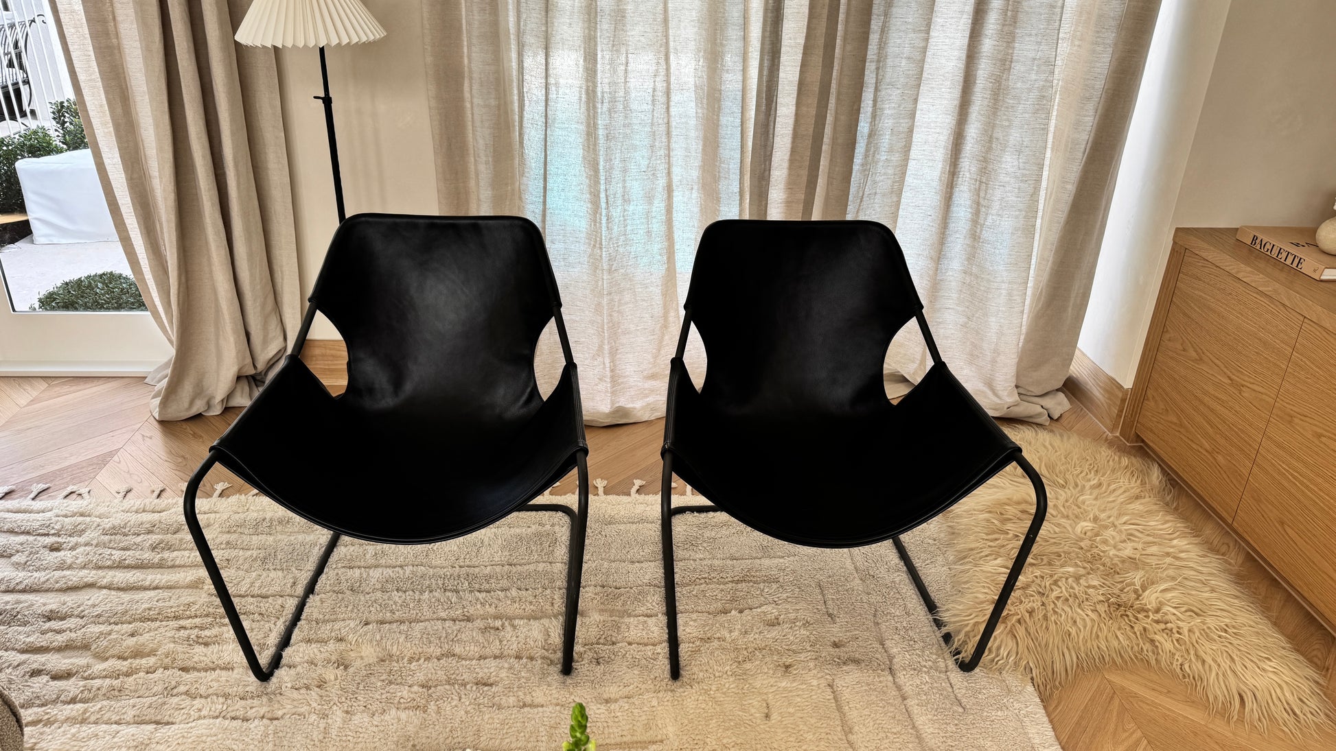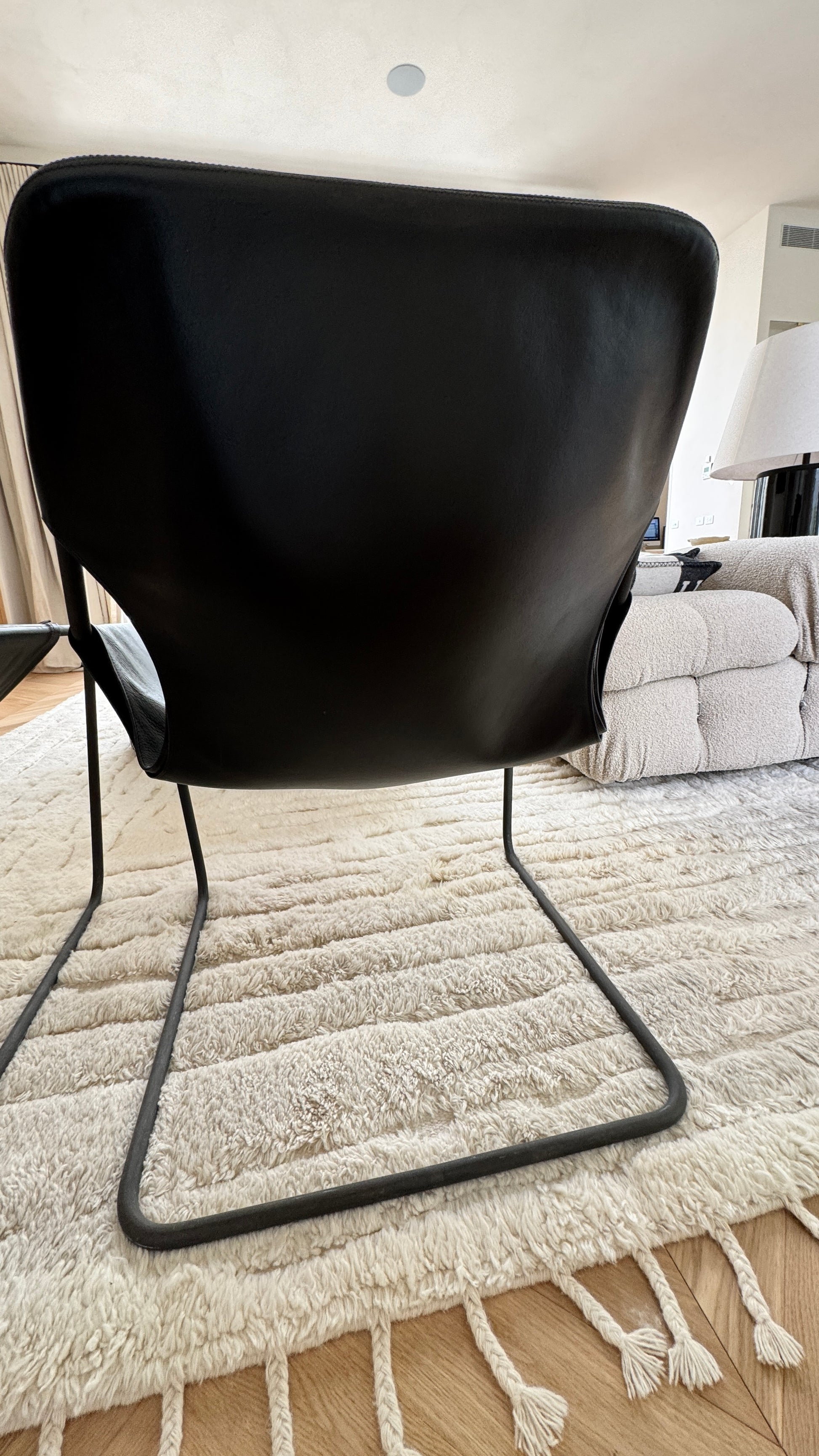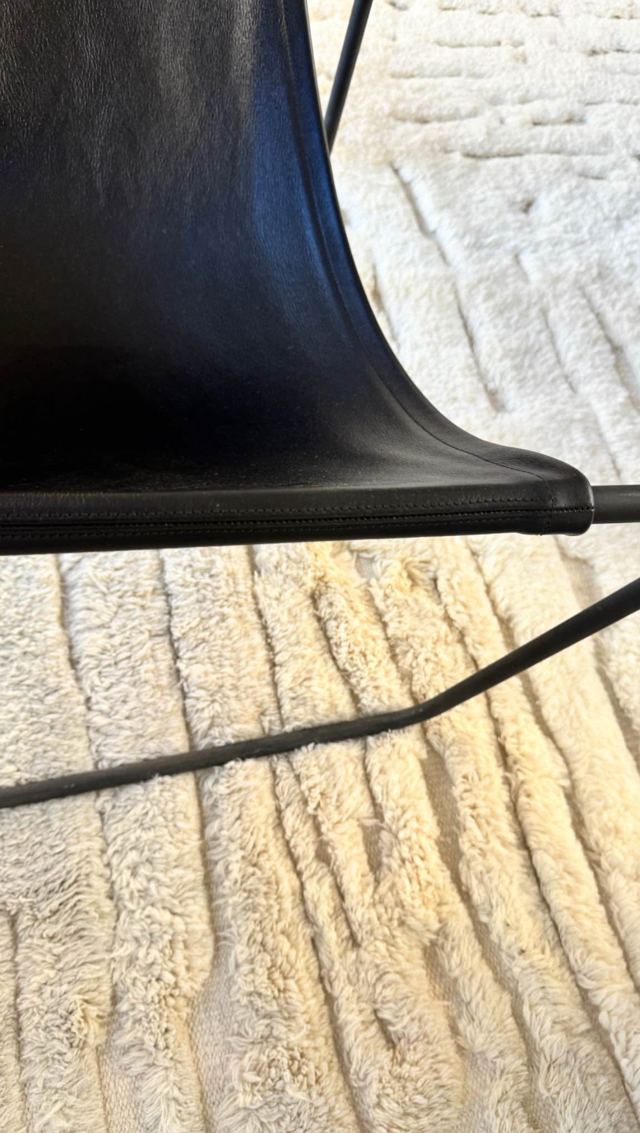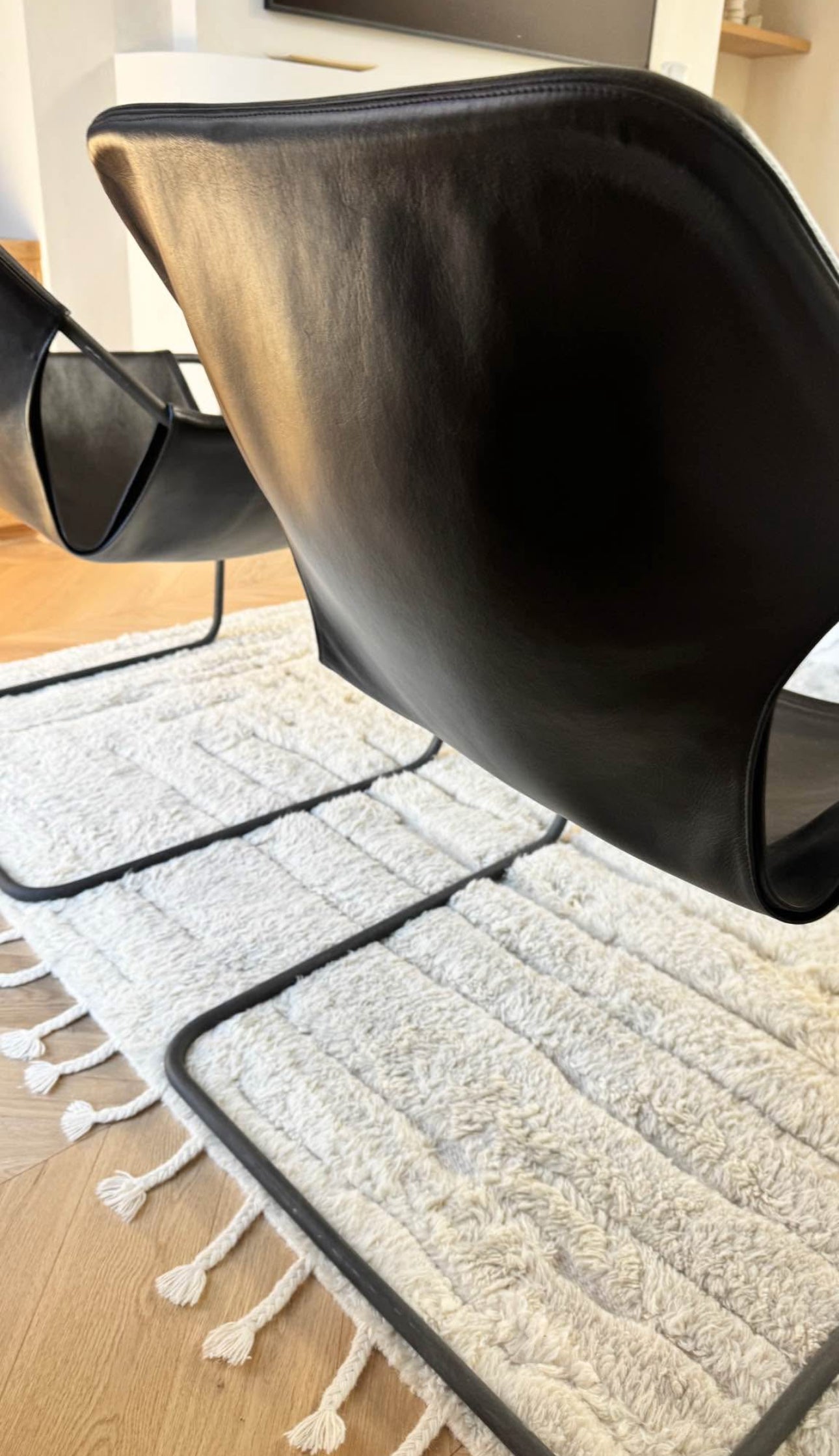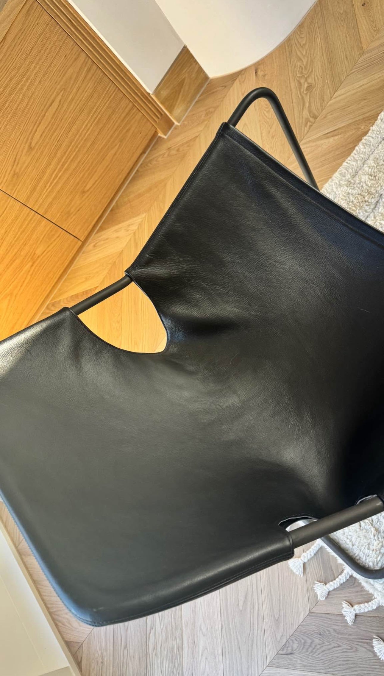 This item is in great overall condition. A small stitch has come loose on one chair. The leather is in very good condition. Steel frame has small marks from general wear. No significant marks and deep scratches.