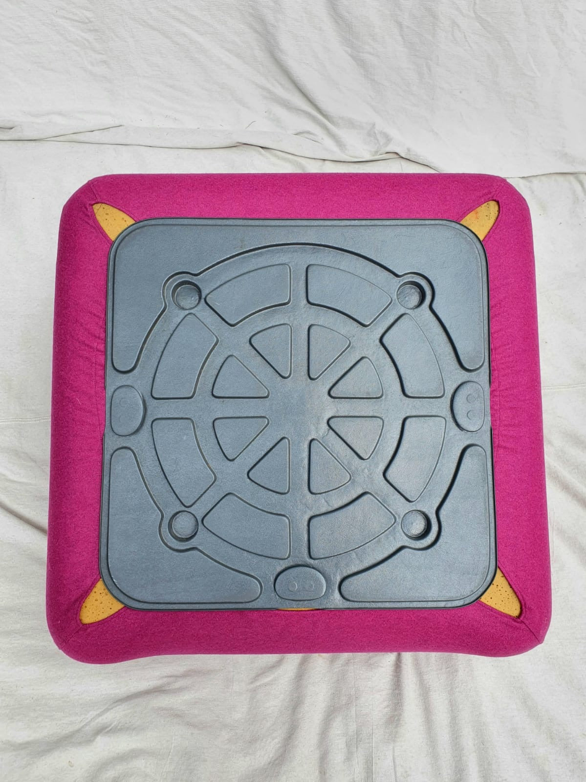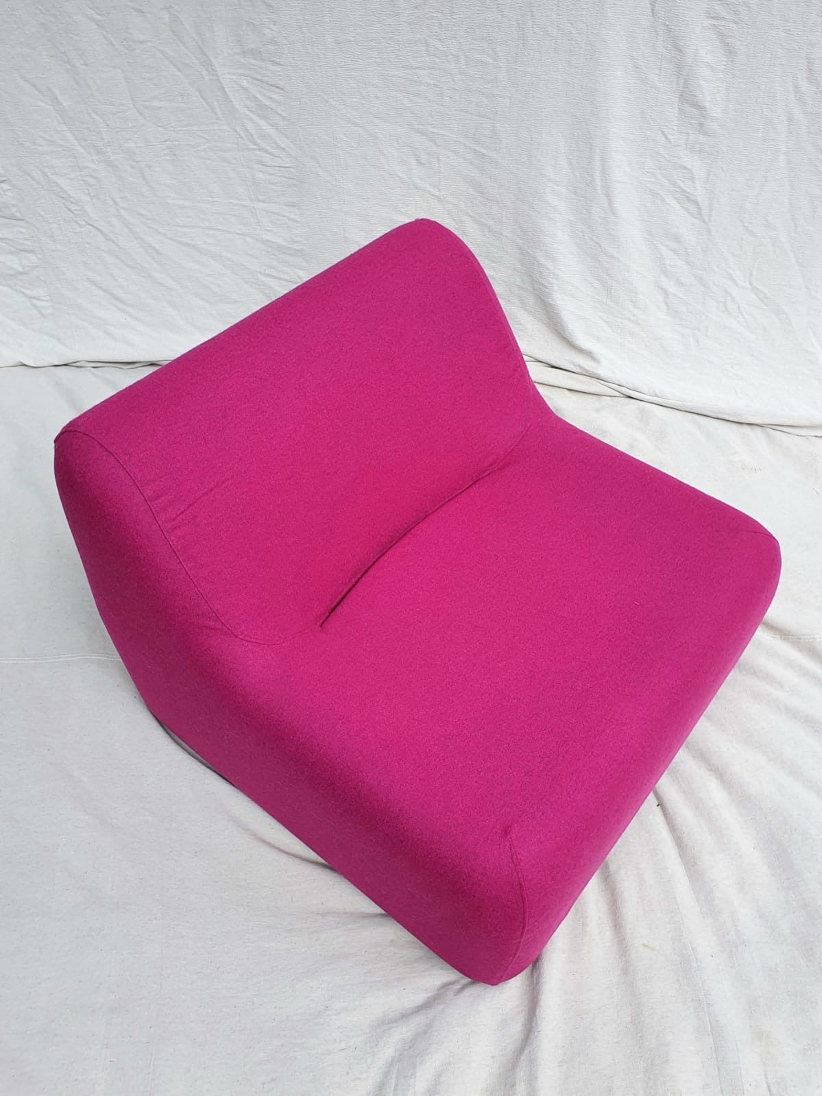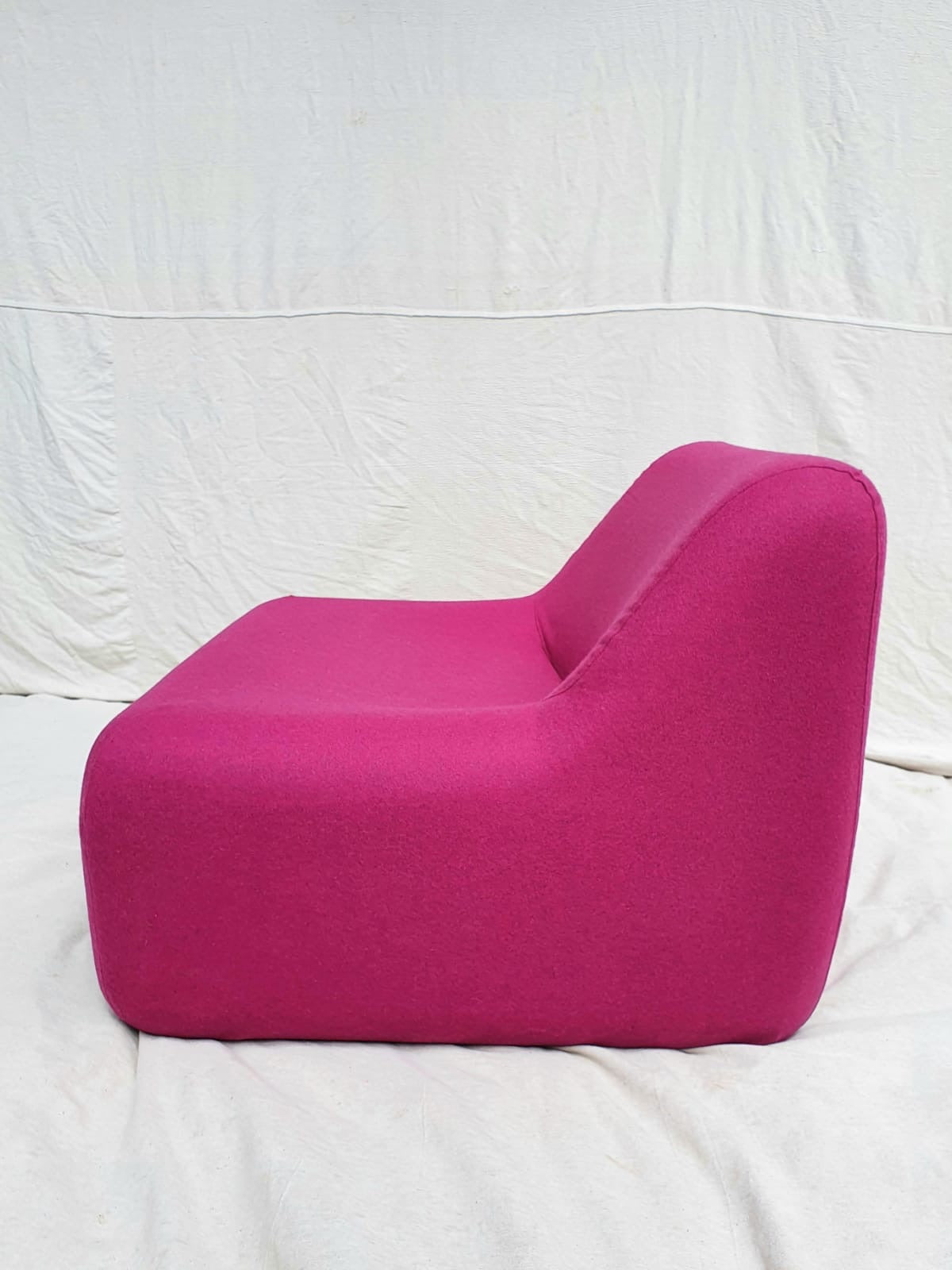 Single Featherston numero VII modular reupholstered by Bulley Bulley Label in Warwick Fabrics' Augustus Fuschia (70% recycled wool).