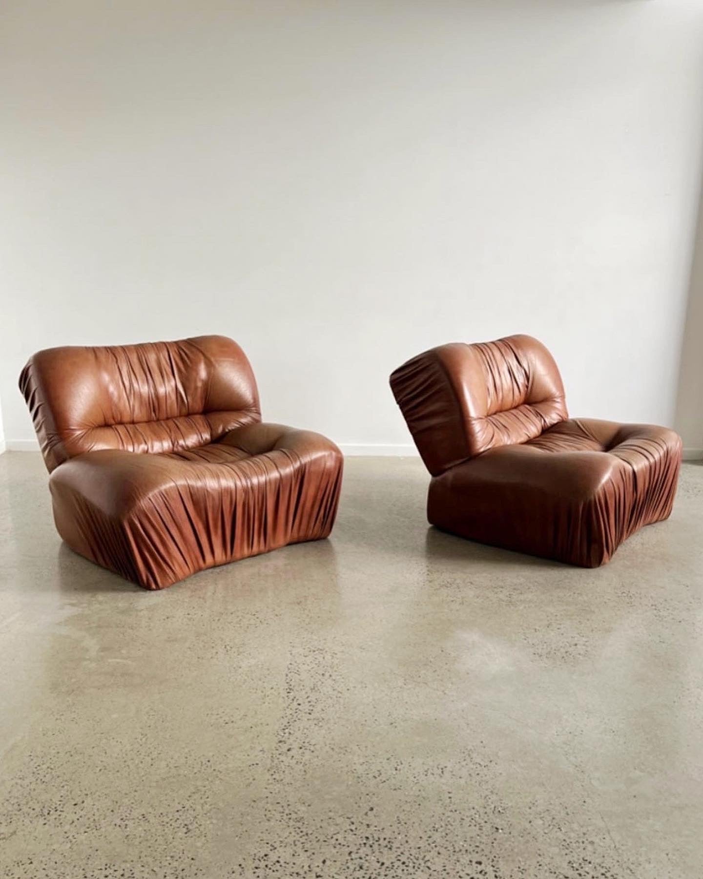 Vintage Italian Leather Armchairs by Giuseppe Rossi for Albizzate circa 1970s. These chairs have just been imported from Italy and are very rarely seen in Australia.