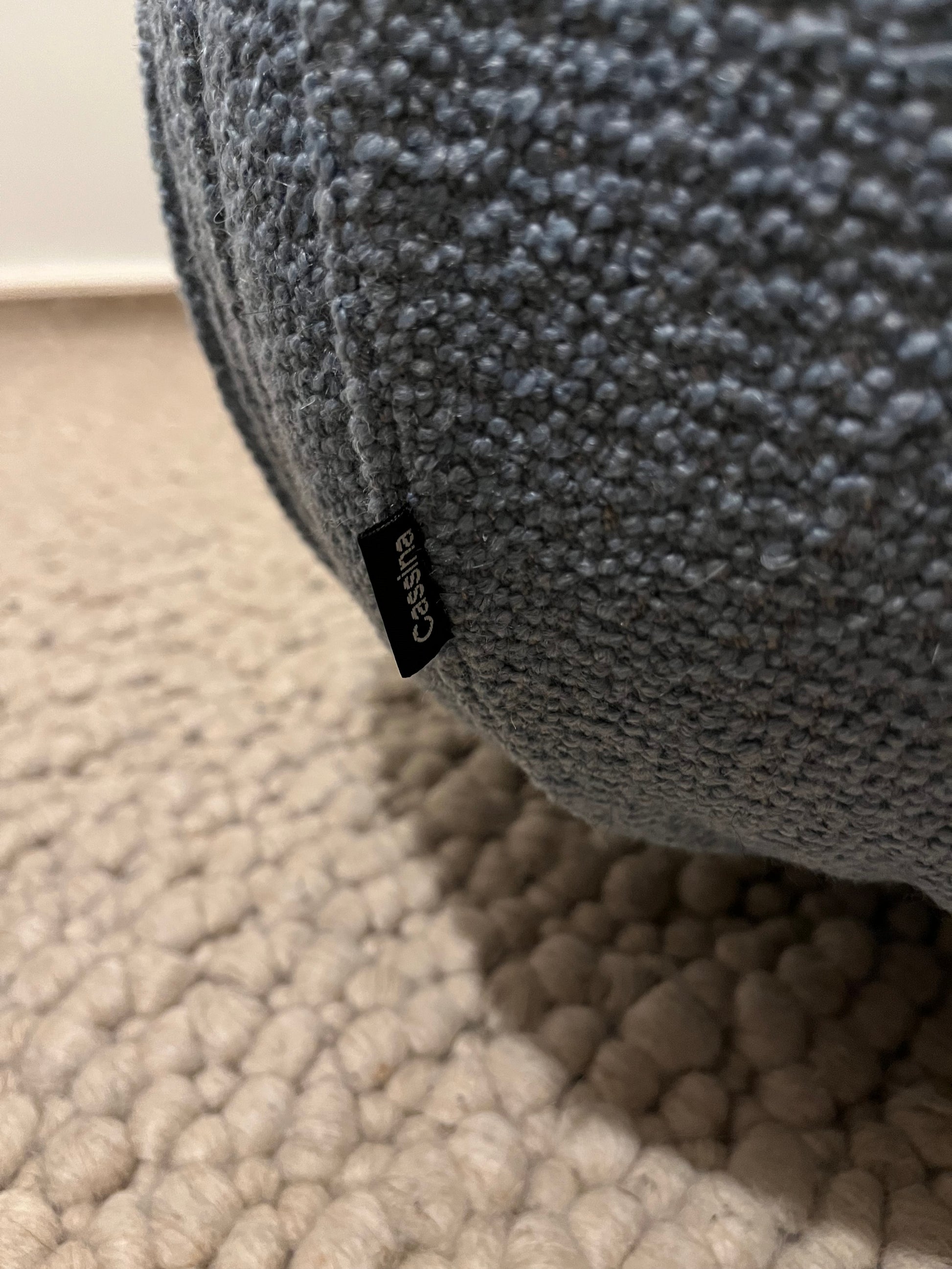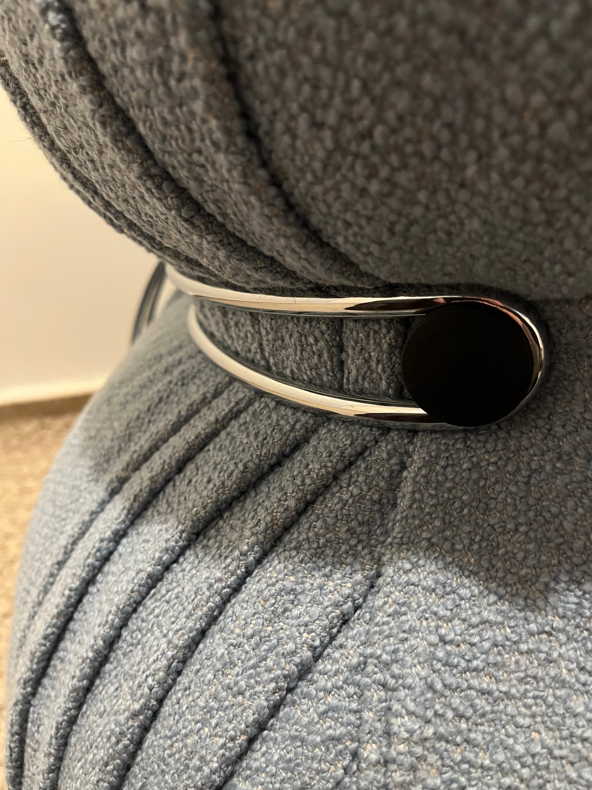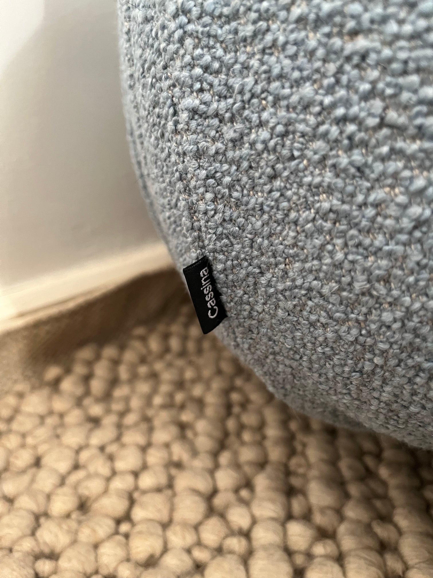 Ordered from Italy in Cielo blue wool boucle and silver hardware.