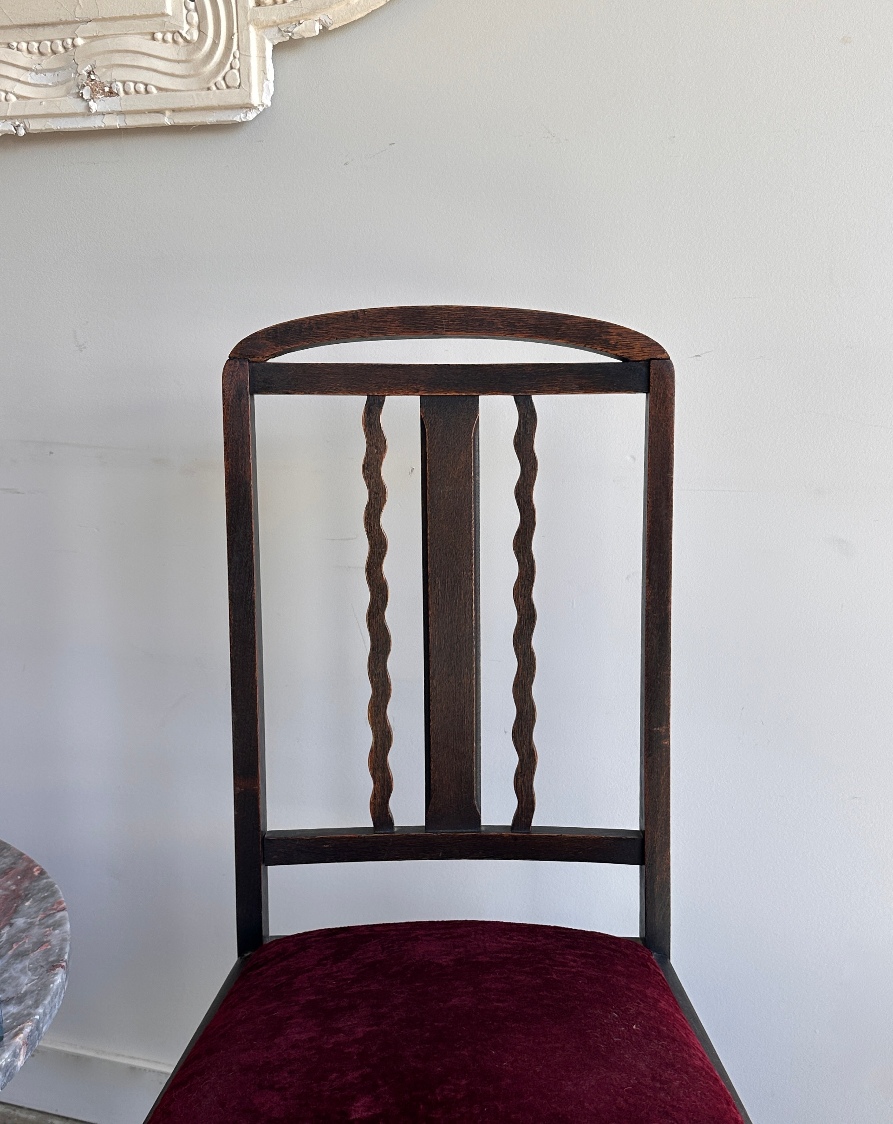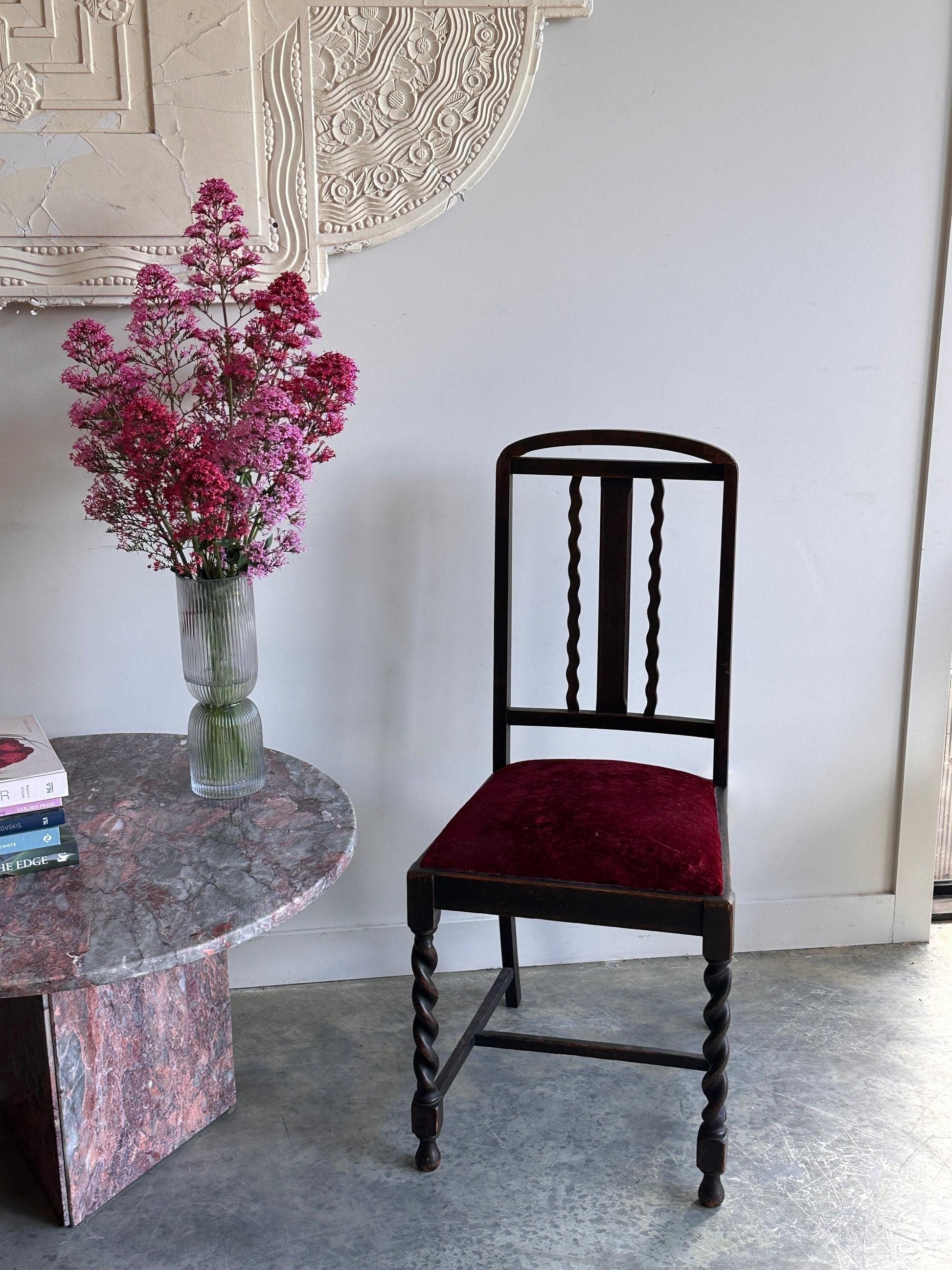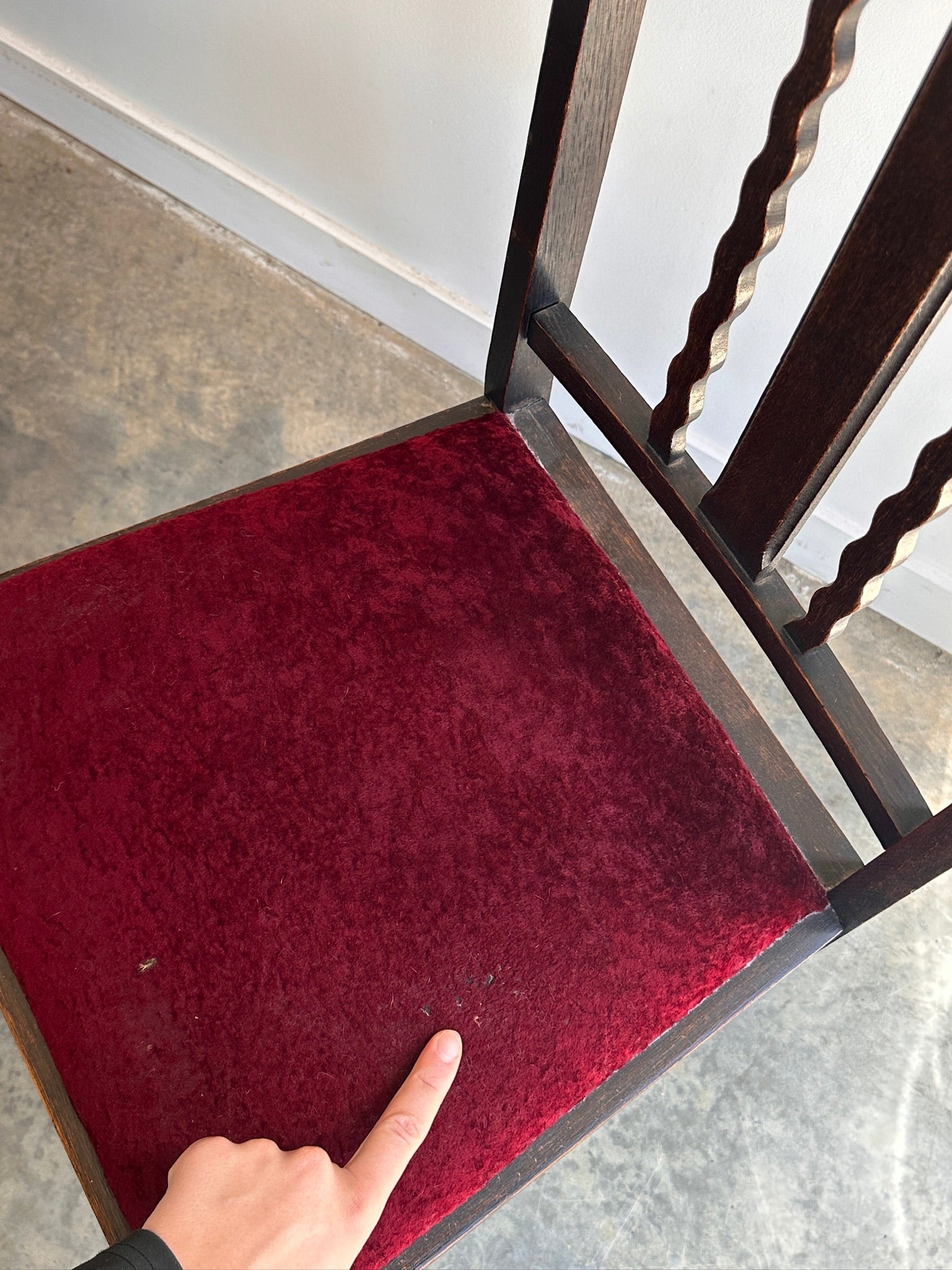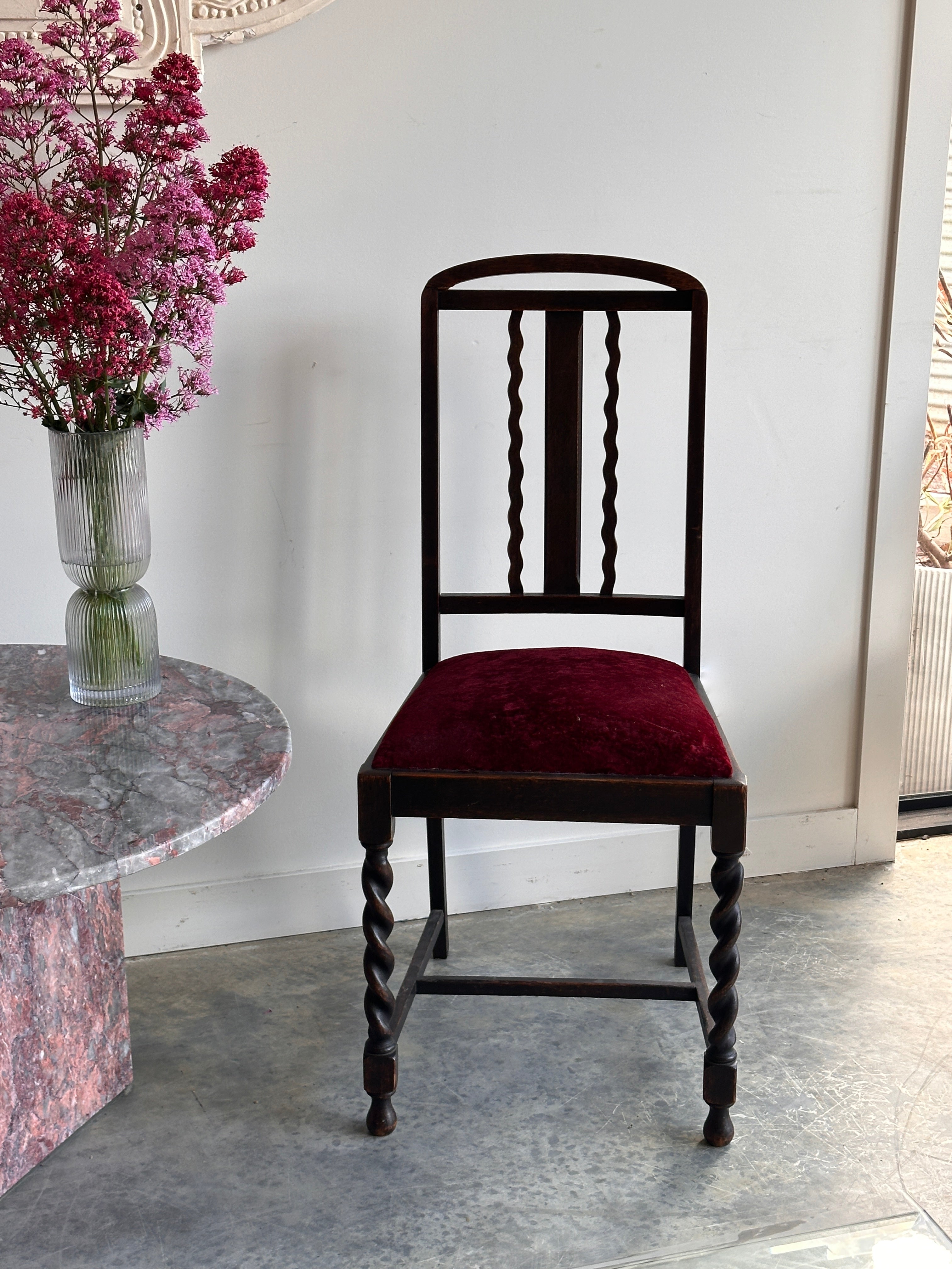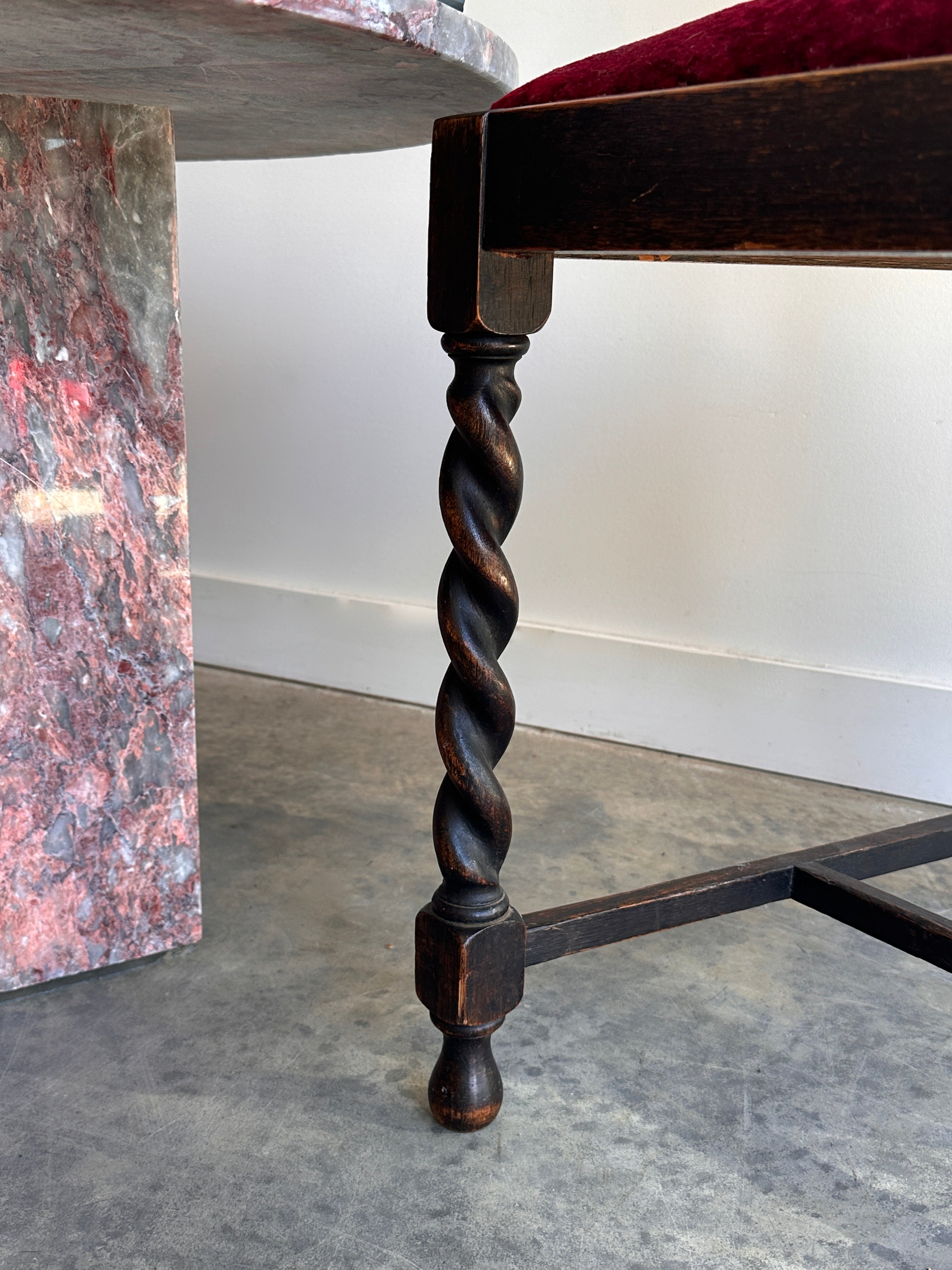Beautiful barley twist, burgundy velvet & back detail.