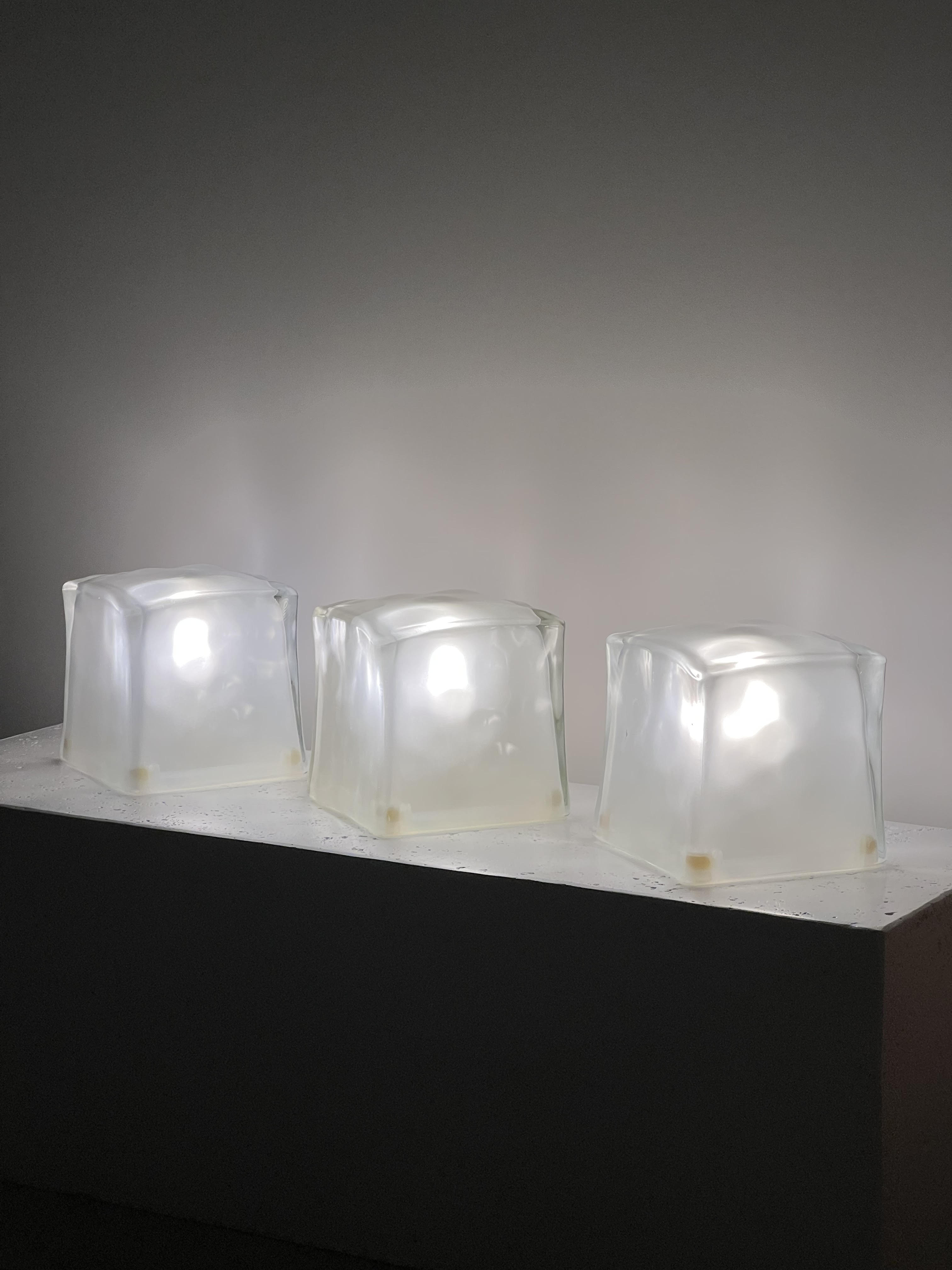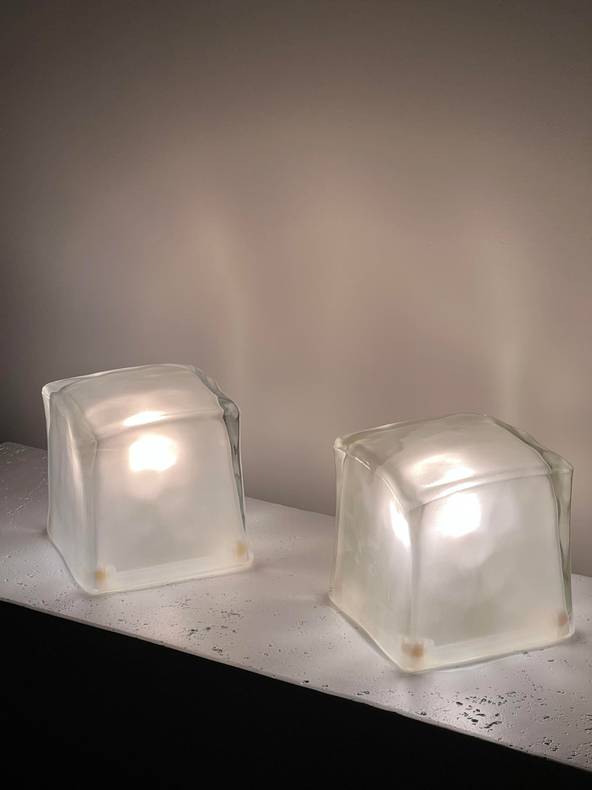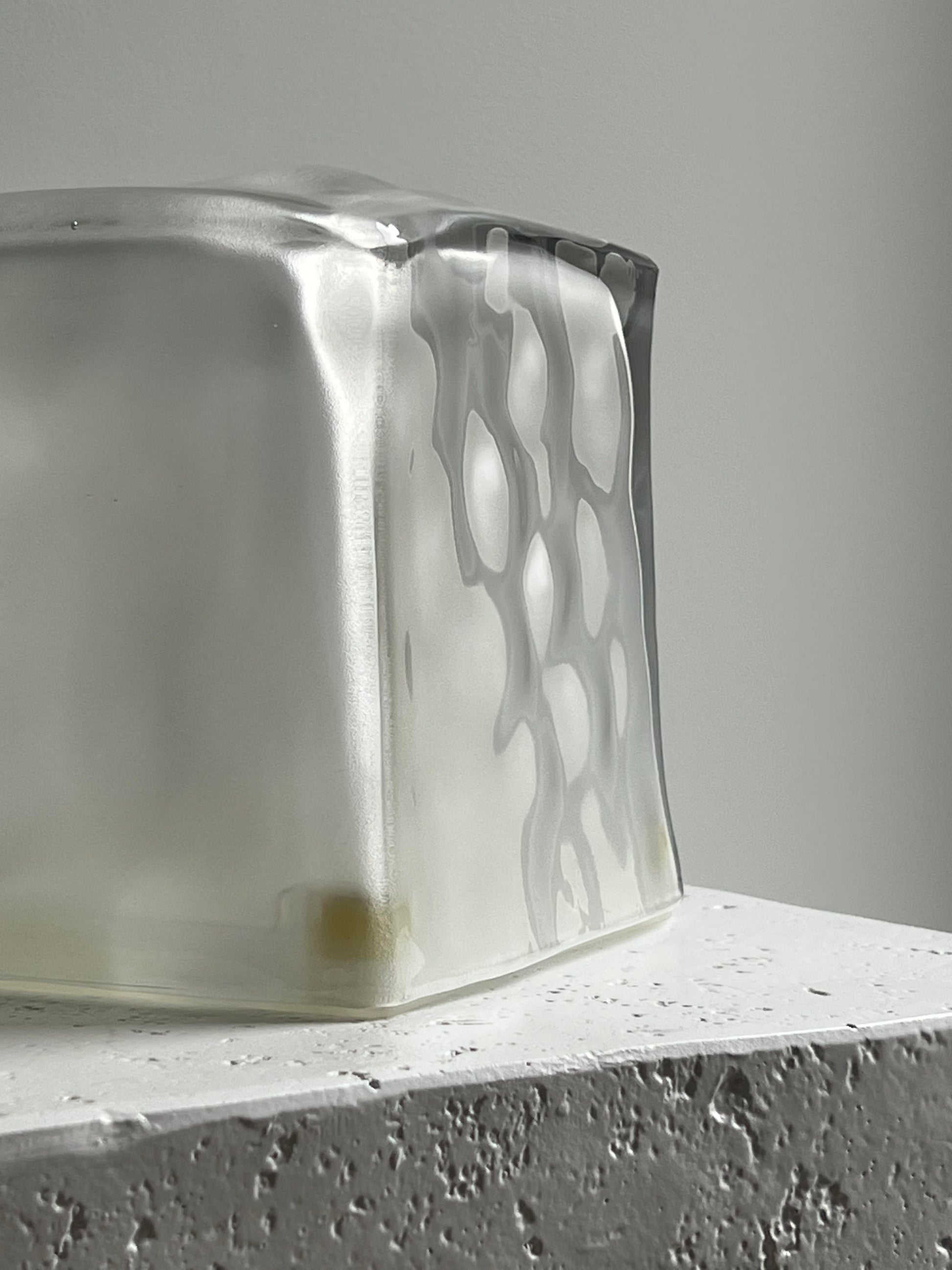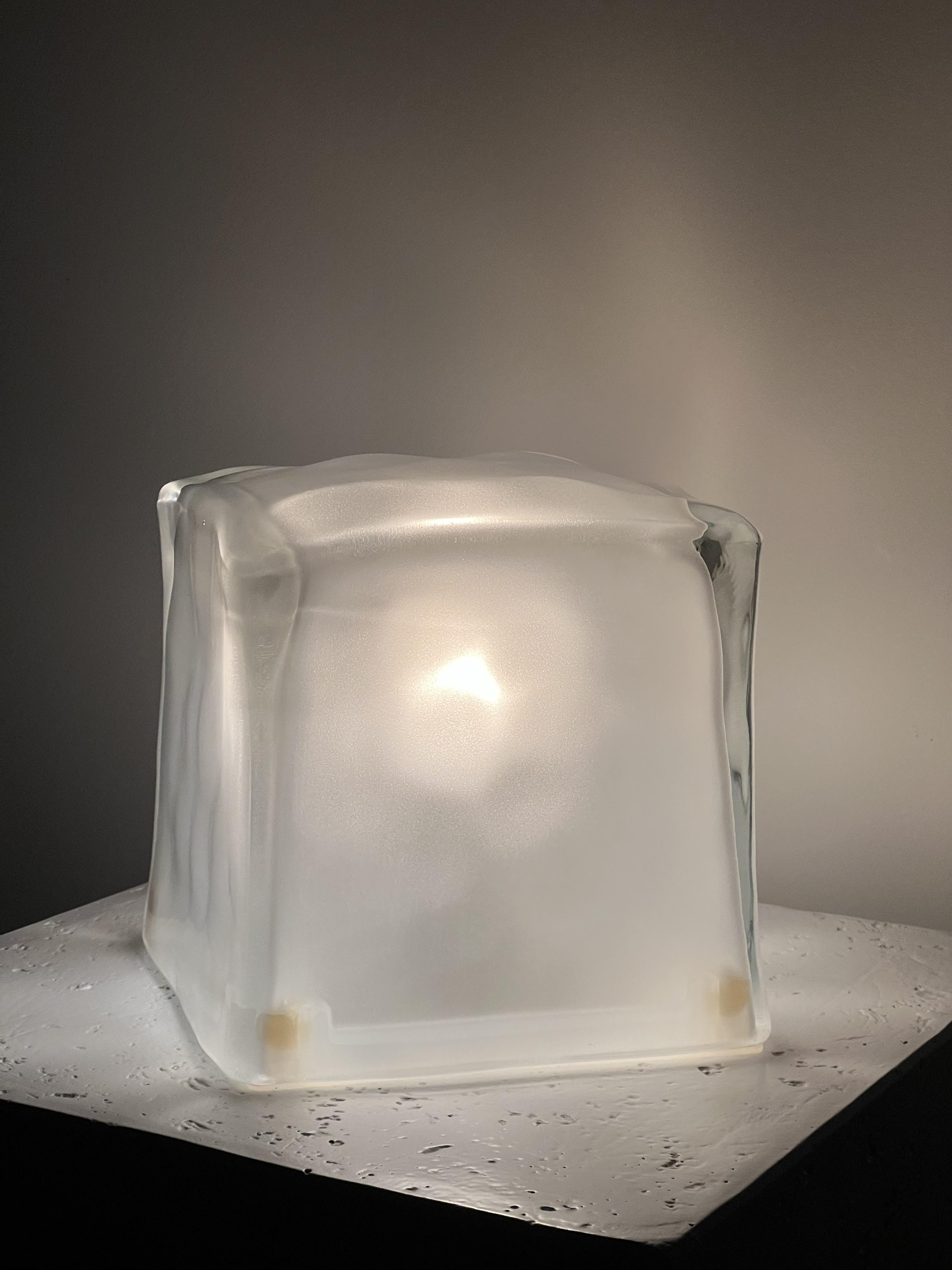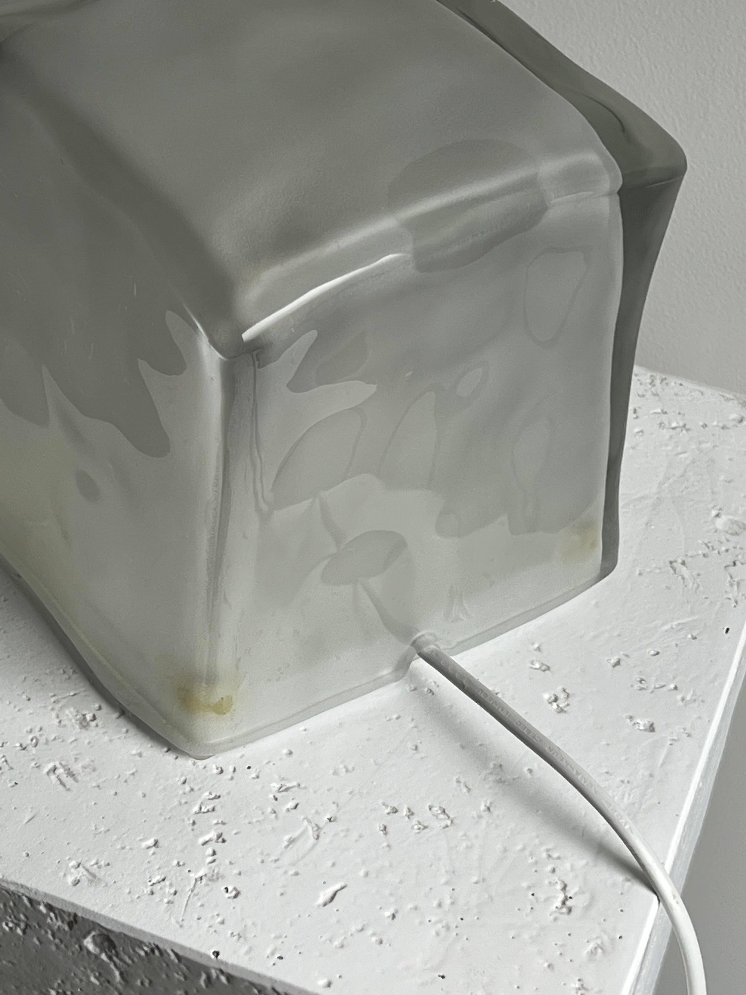Vintage Ikea Iviken Lamp. Weighty, thick, textural cast glass, frosted on the inside.