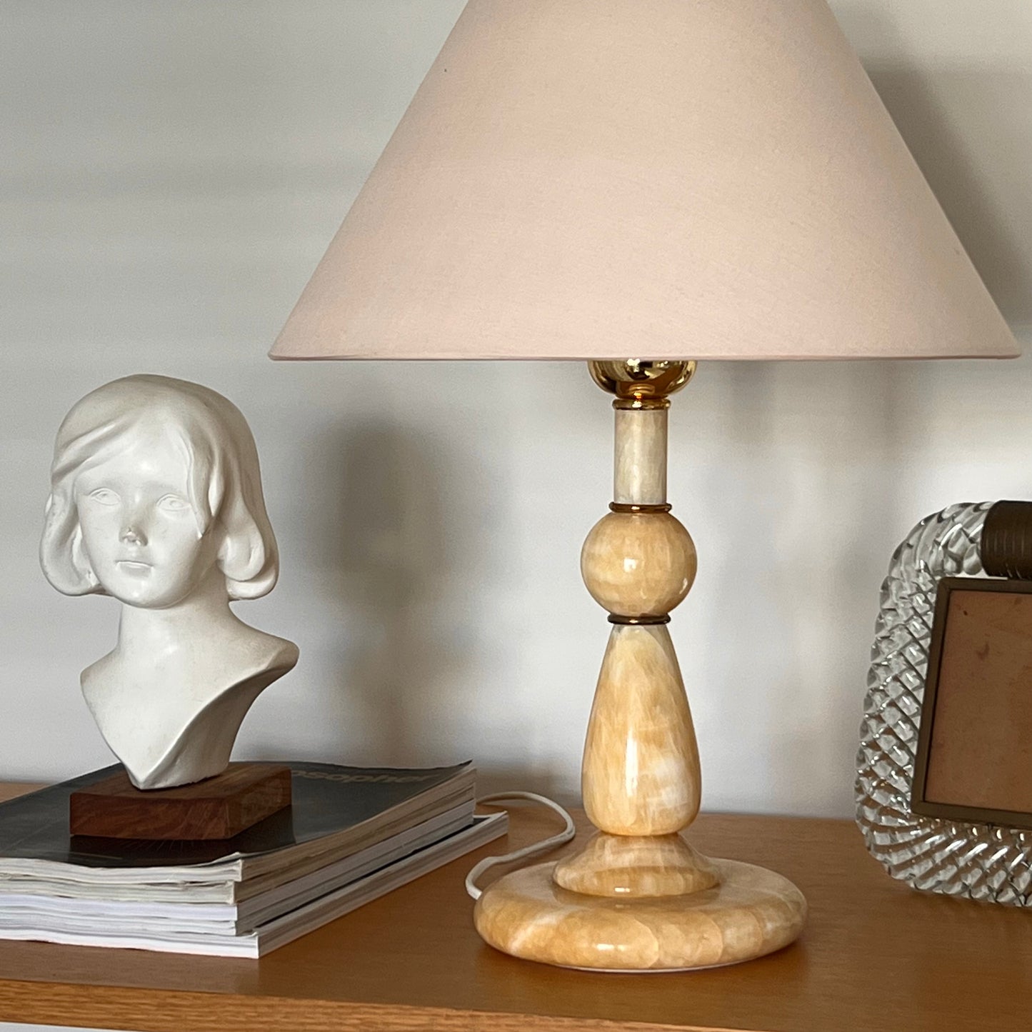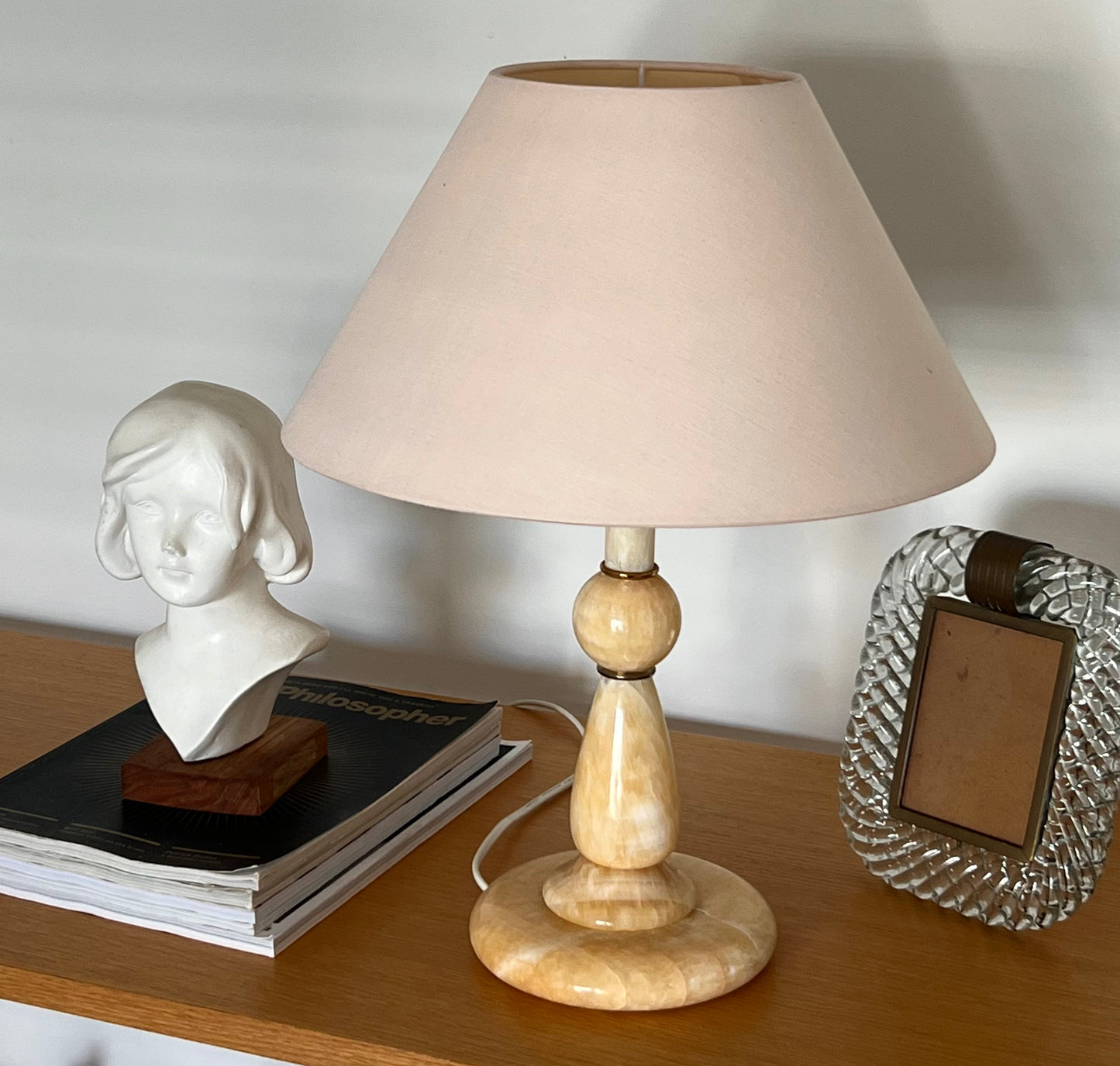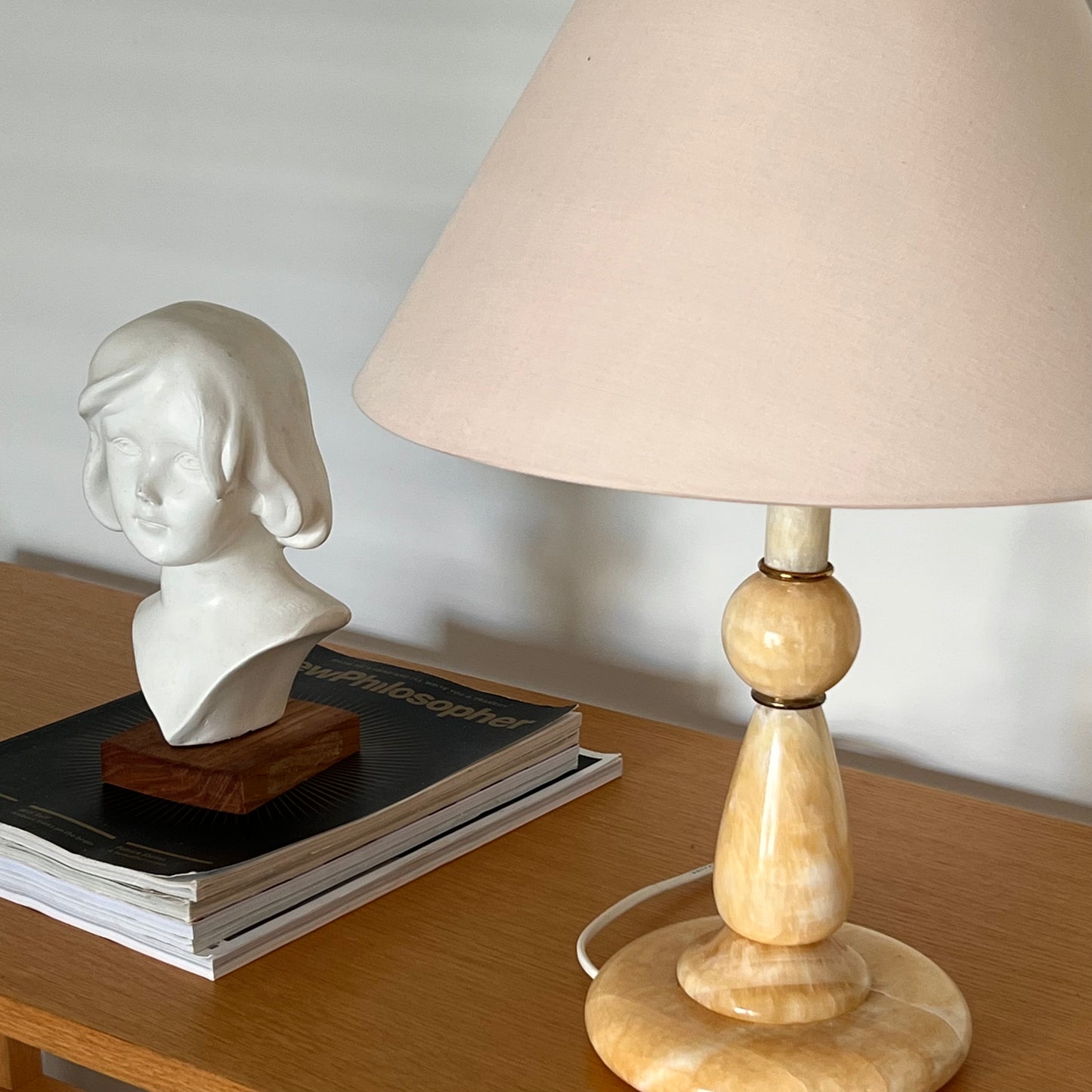 Vintage Italian Onyx Lamp with Pink Cotton Shade
