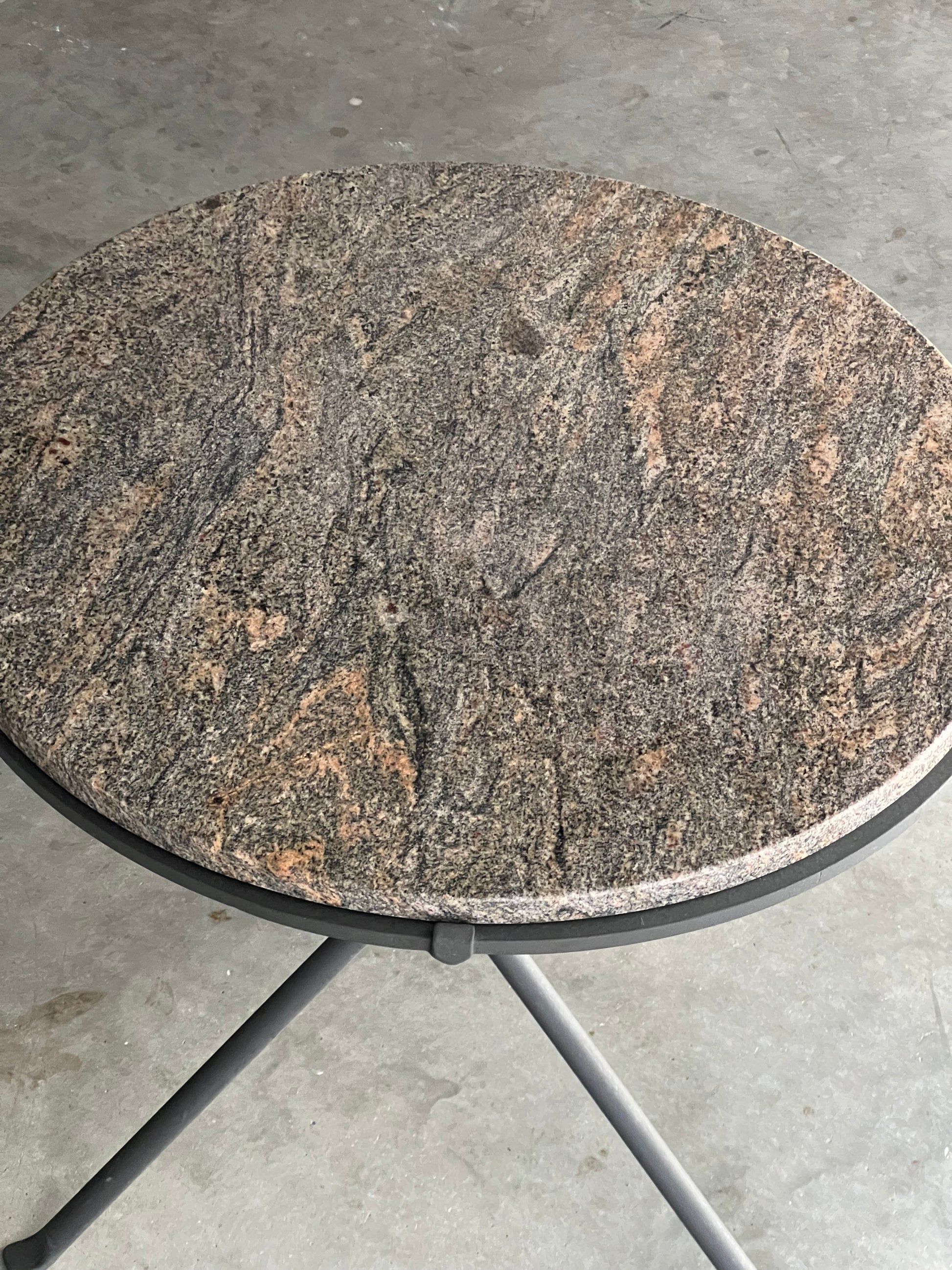 Vintage Italian Wrought Iron & Granite Tripod Side Table - Two Available