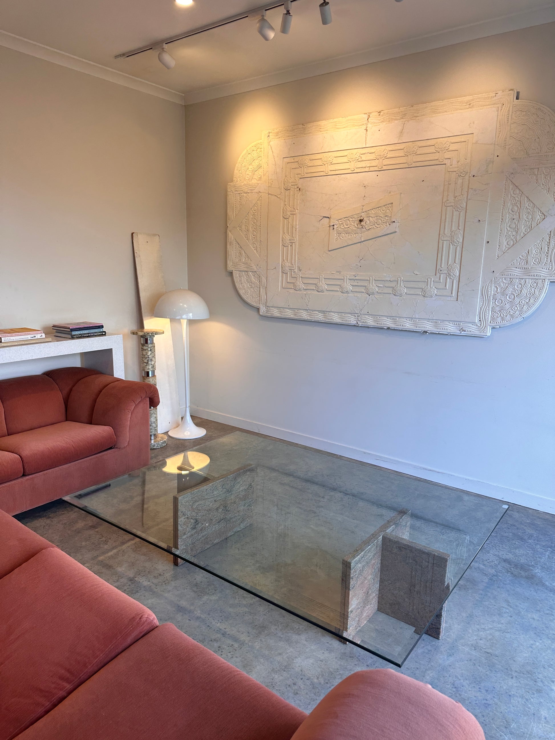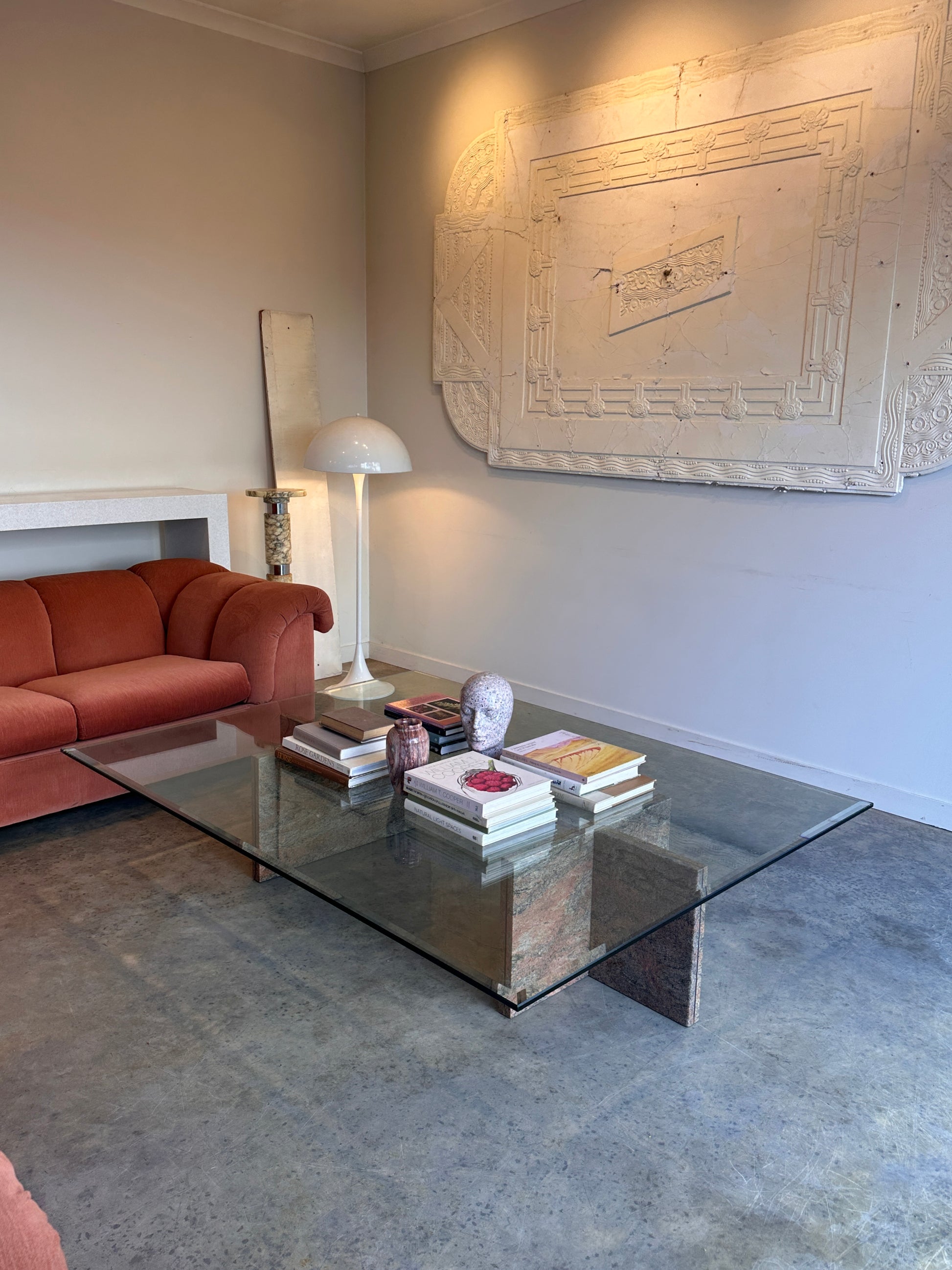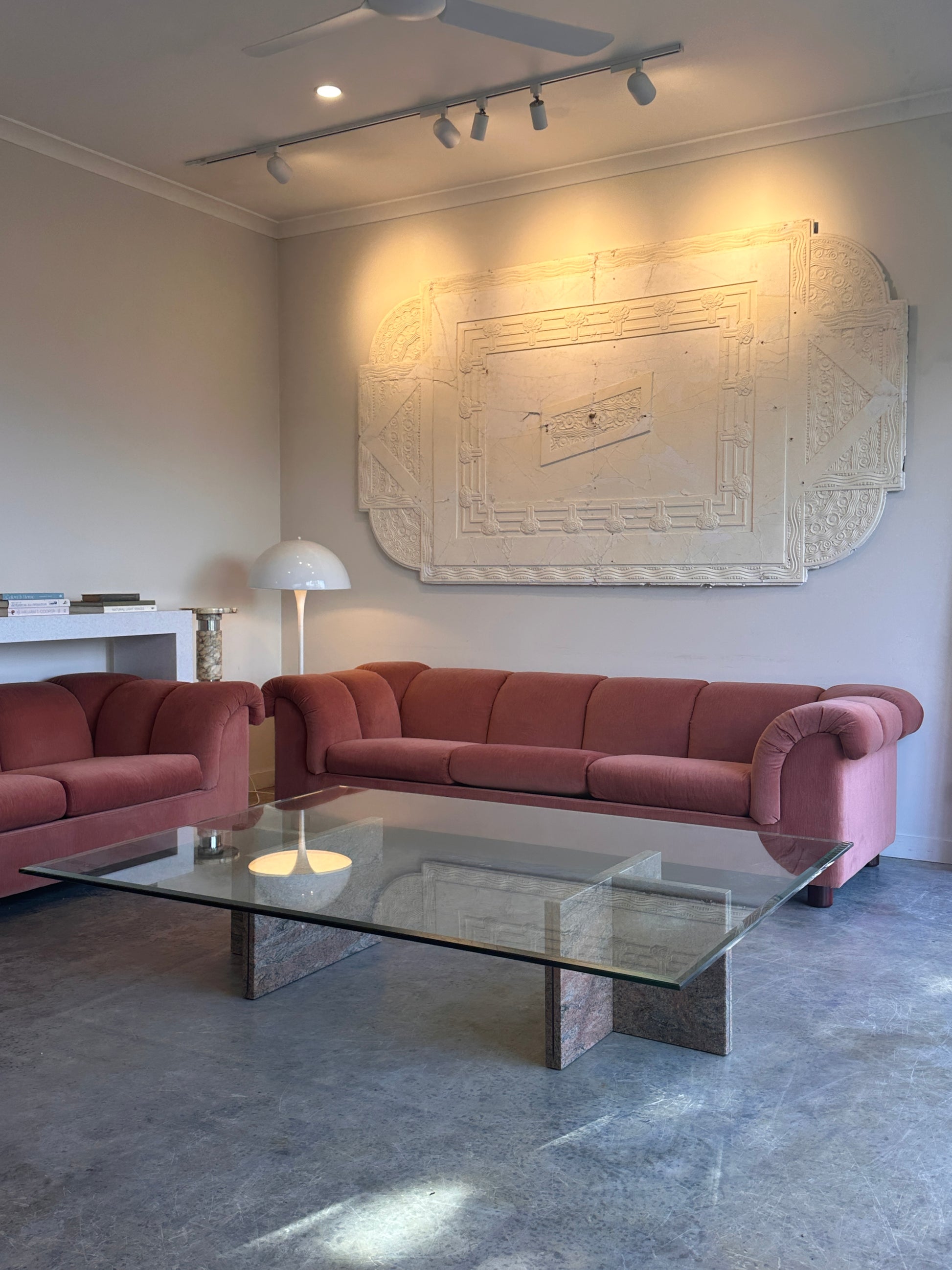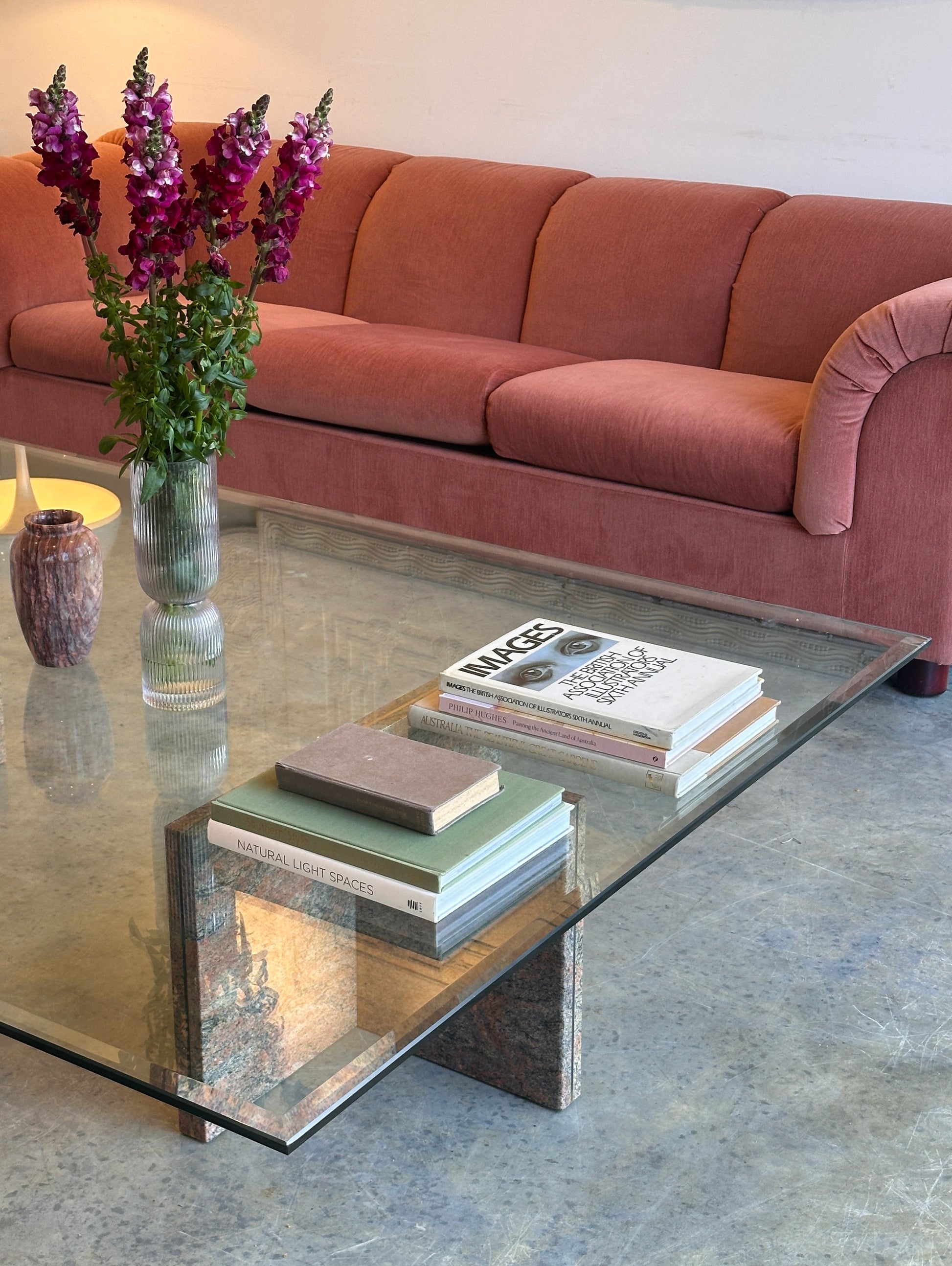 Enormous Vintage Glass & Pink Granite Coffee Table, 80's
