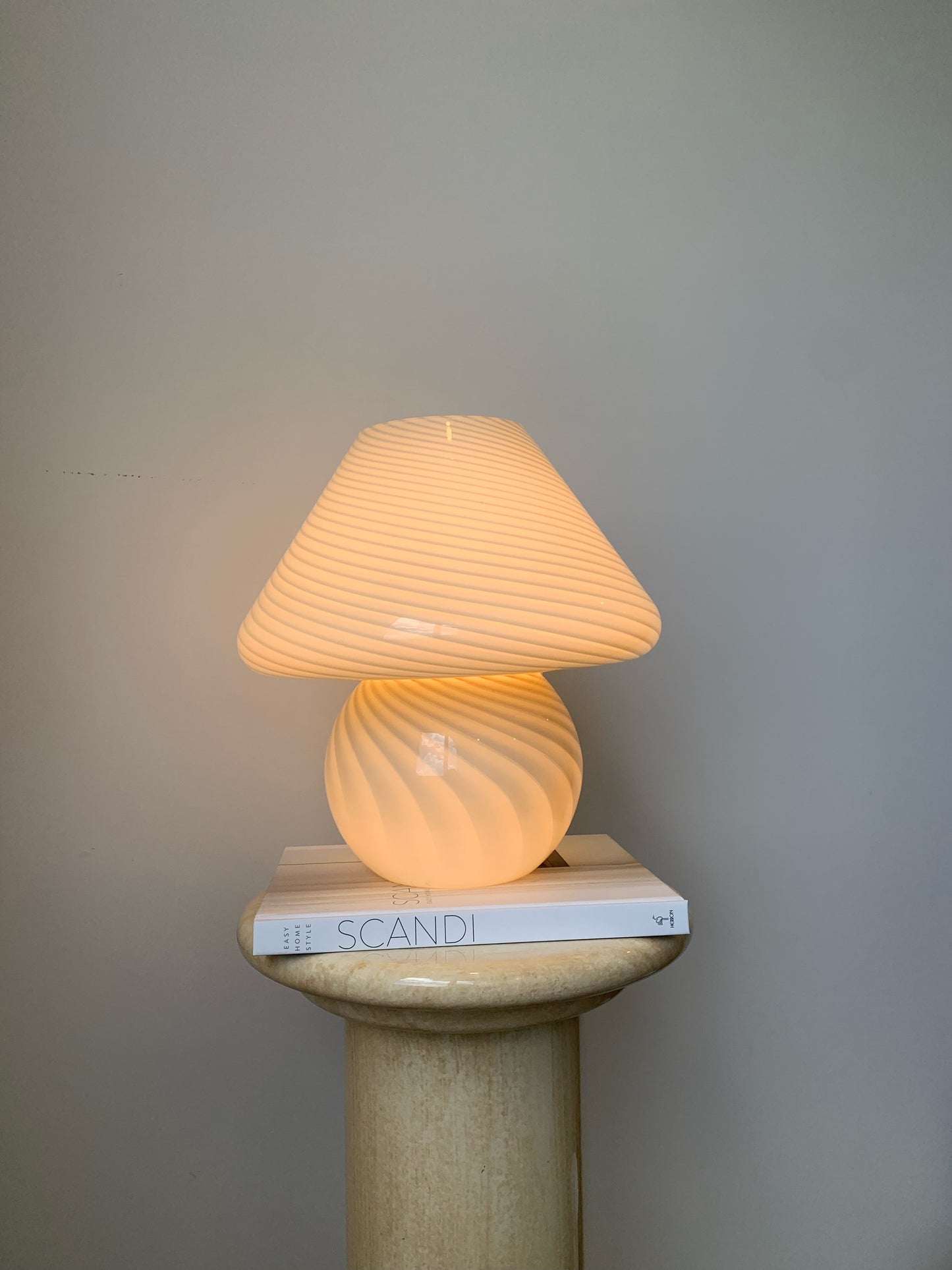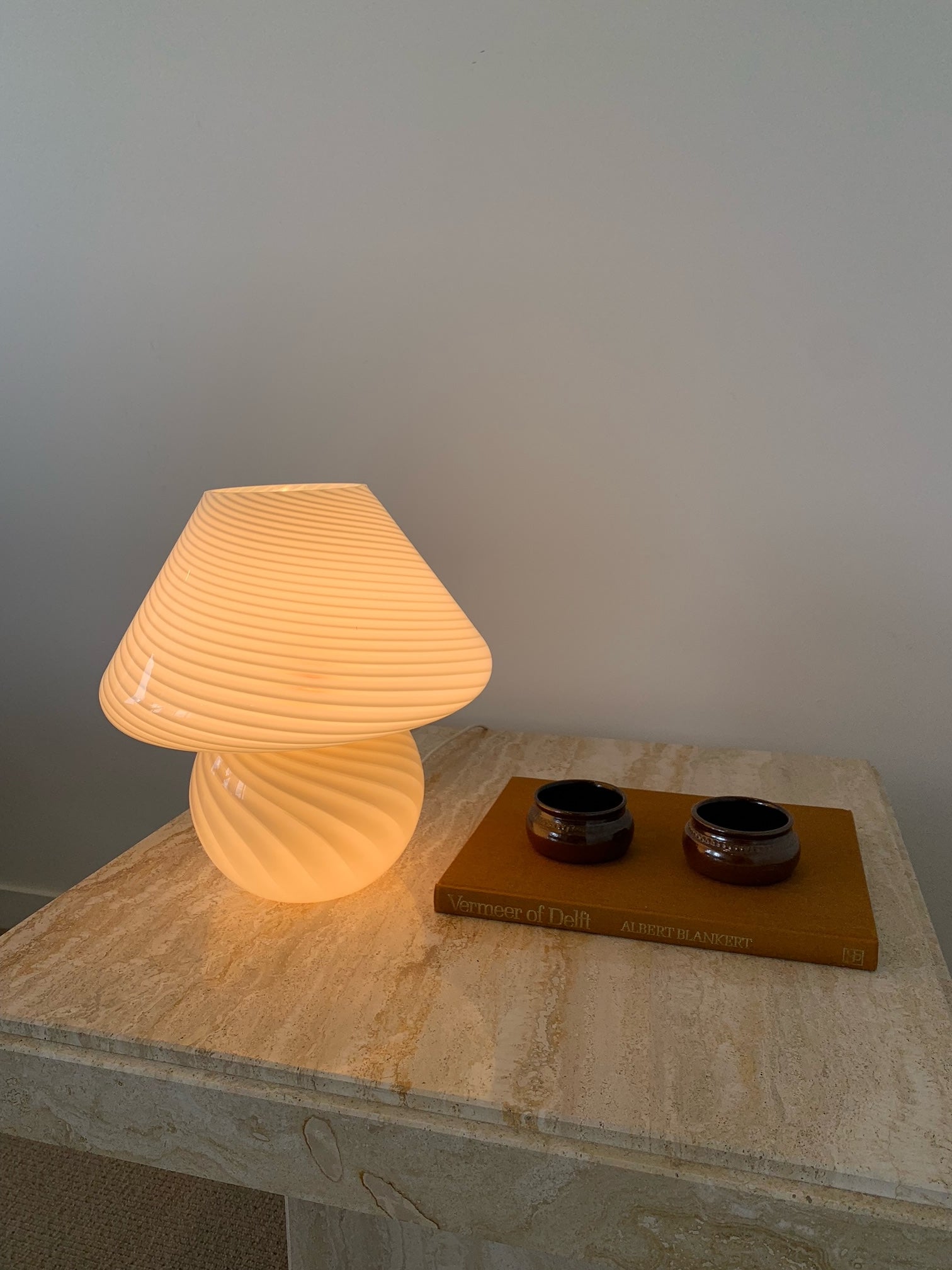 Mushroom Murano glass lamp originally from Italy. When the lamp is turned on it reflects a beautiful warm buttercream glow.